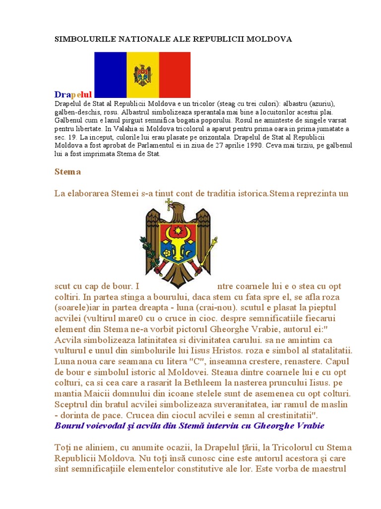Autorul stemei de stat este regretatul gheorghe vrabie.